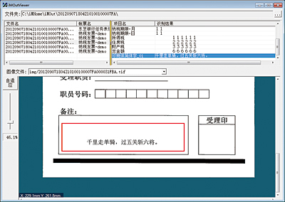 OCRスキャナの外見的な特徴は、「スタッカ」と呼ばれる文書や帳票の排出皿が複数備えられている点だ。通常のイメージスキャナは読み取った文書を排出するスタッカが1か所だけだが、OCRスキャナは正常に読み取った文書と、読み取れなかった文書を分ける機能があるために、スタッカも複数が装備されている。エラー判定の文書は、通常判定とは別のスタッカに排出することで、ユーザーはエラー判定の文書を確実に選別できる。さらに、読み込んだ文書に「通し番号」を印字するナンバリング機能も、通常のイメージスキャナにはない機能である。一度、OCRスキャナに通した文書で、読み込みきれなかった箇所を探すときにナンバリング機能が役立つ。OCRスキャナの制御用パソコンの画面でエラーの詳細を確認したら、例えば“118枚目”の文書がうまく読み込めなかったことがわかったとする。もし、スタッカやナンバリング機能がなければ、大量の文書のなかから118枚目を探すのは容易なことではない。だが、エラー用のスタッカに排出され、かつナンバリング機能によって「118」と刻印されていれば、効率よく目的の文書にたどり着けるわけだ。