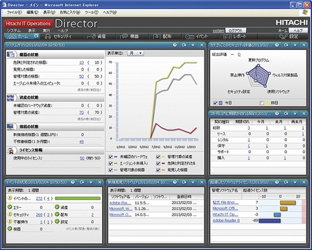 グッドデザイン賞を受賞していることからもわかるとおり、「Hitachi IT Operations Director」の画面はシンプルで、しかもひと目でわかりやすいデザインになっている。直感的な操作で各機能にアクセスできることへの評価は、とくに高い。