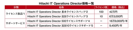 *4 Hitachi IT Operations Director 基本ライセンスパックごとに必要です。購入ライセンス数の合計が500までの場合、1本ご購入ください(500ライセンスまでは定額サポートとなります)。