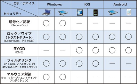 いち早く取り組んだのが、ノートPCの盗難・紛失対策だ。具体的には、ウインマジックのHDD暗号化ソフトウェア「SecureDoc」のセキュリティ技術を取り込んだクラウドサービスを提供。ノートPCのHDDを最小単位であるセクター単位で暗号化し、万が一の盗難・紛失時に、サービスデスクからリモートで無効化する。さらに、ワンビのデータ遠隔消去ソフトウェア「トラストデリート」を活用したクラウドサービス「トラストデリートマネージドサービス」も提供している。盗難・紛失時にノートPC内のデータをリモートで消去して情報漏えいを防止する。