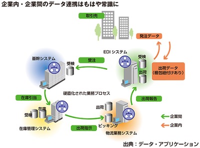従来型EDIについては、「全銀(全国銀行協会連合会)/JCA(日本チェーンストア協会)手順では、モデムの調達が難しくなっている。また、NTTは2025年にPSTN(公衆交換電話網)を廃止する。従来型EDIは、多様なデータ形式にも、インターネットにも対応していない」と、限界が近づいていることを説いた。Web-EDIについては、「自社オンラインと取引先オンラインの融合が進んでおり、リアルタイムの相互データ取引が増えている。一方、受注側が年間で一相手先あたり150万円程度のコストを強いられるケースが多い。発注側は、受注側のコストや苦労を考慮することはないが、受注側は、発注側のお客様にあわせてWeb-EDIの仕組みを構築しなければならない。とくに流通業では問題となっていて、平日だけでなく、土日や年末年始、お盆でもデータ受信に追われている受注側の企業は多い」と問題点を指摘した。一方、企業内のデータ連携(EAI)については、「受注、設計、生産、在庫、販売など、各業務システムが個々に独立していて、インフラを担うミドルウェアがすべて別製品で構成されている。そのため、システムの構成は複雑化している」とした。