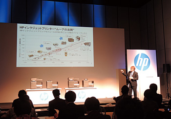日本HPでは「HP Officejet Pro X シリーズ」の発売を機に記者発表会を開催したまずはシェア15%、最終的に40%を狙う