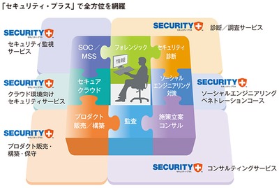 セキュリティ・プラスのサービスラインアップは順次拡充されており、現在では企業が高い水準のセキュリティを維持するために必要なサービスを全方位で網羅している。同社のセキュリティ監視センター(SOC)から、ユーザーサイトで稼働中の機器を専門アナリストが24時間365日運用監視する「マネージドセキュリティサービス(MSS)」をはじめ、フォレンジックやセキュリティ診断、標的型攻撃対策、ソーシャルエンジニアリング対策、監査、コンサルティング(ISMSなど)などを提供している。価格もリーズナブルで、例えばMSSのUTM(ファイアウォール+IPS)監視は月額7万4000円からとなっている。