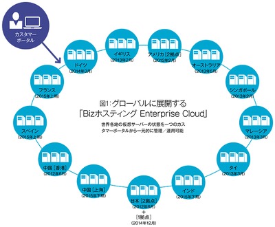 田中 クラウドサービスにおけるグローバル展開については、BHECをこれまで9か国11拠点から提供してきましたが、2015年内にはこれを13か国16拠点に拡大する予定です。さらに、先ほどお話ししたお客様のご要望にお応えして、世界各地の仮想サーバーやネットワークの状態を一つのカスタマーポータルから一元的に管理・運用できるようにしたフェデレーションサービスをご提供しています。これも比類のないサービスだと自負しています(図1参照)。