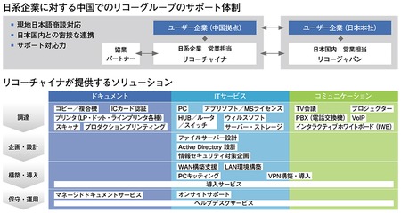 リコージャパンは、中国に進出している日系企業に対するビジネス支援体制を強化している。日本国内に中国案件を専門に手がける「中国担当室」を設置。リコーの中国販売会社である理光(中国)投資有限公司(リコーチャイナ)と連携して、リコーチャイナに日系企業向け営業部門「日系チーム」を配置することによって、日本と中国の両地域をカバーしてワンストップで製品・サービスの提供を実現している。世界で評価の高い日本のきめ細かなサポートなど、リコージャパンではユーザー企業に対するビジネス支援を中国でも行う体制を生かして、日系ITベンダーとのパートナーシップ深耕にも生かしていく方針だ。