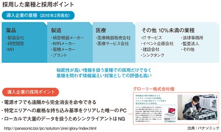 坂本 秘匿情報を取り扱うお客様が多いのですが、最近ではセキュリティ意識の高まりもあって、業界を問わずいろいろなお客様でお使いいただいています。例えば、通貨処理機などを取り扱うグローリー様には、厳格な基準を設けた特定エリアに持ち込むことができる“唯一のPC”が、TRUST DELETE Bizを搭載したレッツノートということで使っていただいています。