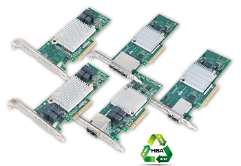 HBA 1000シリーズは、業界で最も幅広く採用されているストレージスタックからのスマートIPを使用しながら、既存インフラを継続してサポート。他社のHBAと比べて最大で60%も消費電力を低減するなど、業界で最も低い消費電力を実現している。ロープロファイル形状とmini-SAS HDコネクタにより、エアフローを妨げることなく、1Uや2Uサーバーにインストールすることができ、最小の実装面積で最大のネイティブ接続が可能。SSDの使用時には、PCIe Gen3バスを飽和させて、1秒あたり130万I/O(IOPS)を提供。高密度サーバー環境での放熱問題を低減できる。