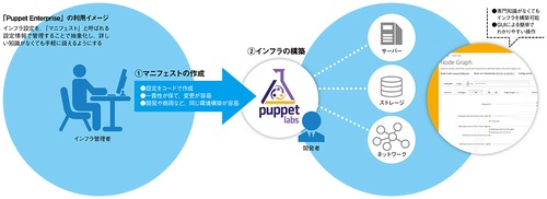 ITインフラの管理が複雑化するなか、サーバーのOSやミドルウェア、アプリケーションなどのシステム構成を自動で一括管理するツールに注目が集まっている。構築や運用の負荷を軽減して運用コストを抑制すると同時に、人手による作業で生じがちなミスを減らし、運用品質を向上させることができるためだ。このようなツールの一つが、オープンソースソフトウェアの「Puppet」で、サポート付商用版として販売されているのがPuppet Enterpriseである。