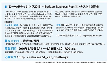 まず目玉となる強化施策の一つとして、D-VARパートナーの方々を対象にした、ビジネス・プランのコンテストを開催致します。当社の新年度にあたる今年7月には、優秀なプランを決定する予定で、Surfaceに関わる販売促進費用をファンディング(資金提供)することによって、パートナーの事業を支援していきたいと考えています。D-VARの方々としっかりと手を組み、一緒になって新たな市場を開拓し盛り上げていきたいと思いますので、これからも当社パートナー施策にご期待いただきたいと思います。