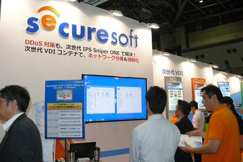 セキュアソフトは、5月11~13日に東京ビッグサイトで開催されたIT見本市「2016 Japan IT Week 春」内の「第13回 情報セキュリティEXPO 春」に出展した。次世代VDI(仮想デスクトップインフラ)との呼び声が高い情報漏えい対策ソリューション「SecureSoftコンテナ」をはじめ、国内市場でトップシェアを誇るSniper IPS(侵入防止システム)の後継モデルとなる次世代IPS「SecureSoft Sniper ONE」、さらに標的型攻撃対策「SecureSoft Sniper APTX」を参考出展し、多くの来場者から高い関心を集めていた。