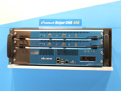 展示のもう一つの目玉であるSecureSoft Sniper ONEは、IPSを核にネットワーク上でのさまざまな攻撃への多層防御を実現する統合セキュリティアプライアンスだ。セキュアソフトは、国内のIPS専用機市場では2011年度から3年連続トップシェアを獲得している。(富士キメラ総研、ミック経済研究所調査)