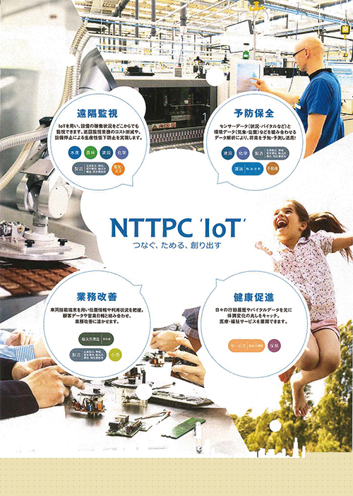NTTPCがIoTソリューションによって実現することは、「遠隔監視」「予防保全」「業務改善」「健康促進」などだ。プラットフォームをはじめ、セキュアネットワーク、IoTデバイス、アプリケーションなどのノウハウがあるからこそ、さまざまなニーズに対応することができる。