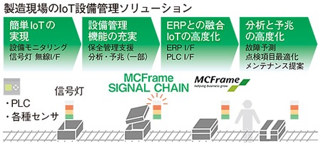 こうした課題に対して、B-EN-G上海が提案するのが「MCFrame Signal Chain」だ。設備の稼働環境をモニタリングすることで、工場や製造グループの生産性や信頼性の向上につなげるIoTを活用した製造現場の設備管理ソリューションである。既存の設備をそのままに、簡単かつ低コストで、早期に利用を始められることが最大の特徴だ。