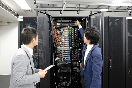 「PICをつくったのは、2013年。バリューアディッドディストリビュータには必須の設備だと考えたため。実際、パートナーから引き合いは多く、直近の1年間で50以上の実績がある」(高田悟・ストラテジックプロダクツ営業部SP1課課長)とニーズを実感している。PICでは、ラック内に組み立てて、ケーブリングの作業なども含めて、ほぼ完成の状態にして動作検証を行うため、初期不良の検出にも役立っている。納品の現場では、「もう1回つなぐだけ」(三好哲生・インフラマーケティング部データセンタソリューション課課長代理)の状態にすることを目指している。