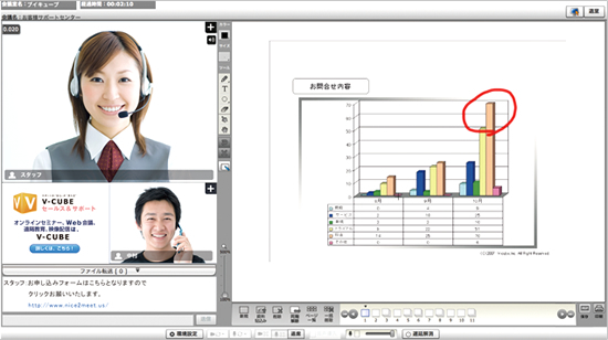 V-CUBE セールス&サポートの導入にあたっては、「ブラウザベースのため専用ソフトなどをインストールする必要がなく、お客様も口頭でお伝えするURLにアクセスするだけで手軽に利用できる。加えて資料共有の操作性を評価した」と下村氏。また、5000社以上の豊富な導入実績と信頼性、ブイキューブの各種サービスとの連携もメリットにあげる。