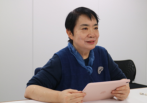 浮川和宣社長に遠慮しながらも、大事な部分では横やりを入れ、詳しく説明してくれる浮川初子専務