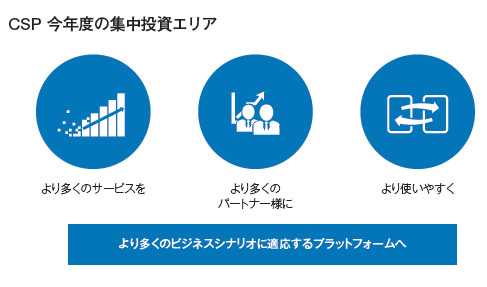 日本マイクロソフトでは、「より多くのサービスを」「より多くのパートナー様に」「より使いやすく」することをCSPにおける今年度の集中投資エリアとしている。