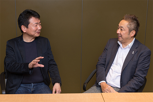 インタビューに応じたチームスピリットの荻島代表取締役(左)と週刊BCNの谷畑良胤編集委員
