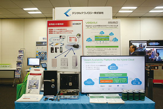 デジタルテクノロジーは、ヴィーム・ソフトウェアの仮想化やクラウドにおけるデータ保護に特化したソリューション「Veeam Availability Suite」と、ABLOYのセキュリティソリューション「PROTEC2 CLIQ」を紹介した。