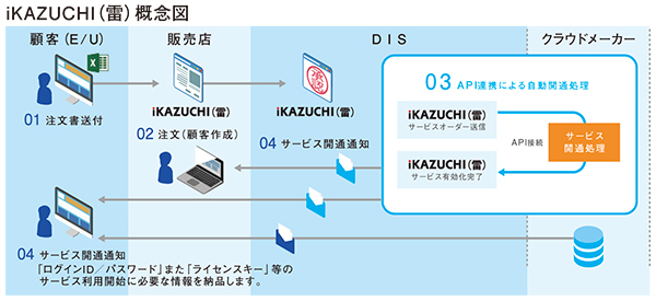 クラウドビジネスへの注力を進めるDISでは、16年8月にクラウドアグリゲーションプラットフォーム「iKAZUCHI(雷)」の提供を開始した。これは「継続課金型サービス契約」の新規登録や契約管理を容易にしたパートナー向けサービスで、月額課金や年額課金、従量課金などのクラウドサービスを含むさまざまなサブスクリプション商品の提供形態に対応する。現在、13社のクラウドサービスに対応し、今後もさらに連携メーカー、サービスを拡張する計画だ。また、エンドユーザー自身による契約管理を可能にしたポータルサイト(パートナー紐付き)や、パートナーからエンドユーザーへの課金の仕組みも追加する予定だ。