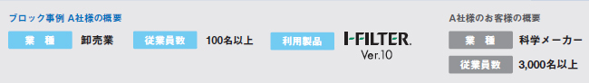 A社様ではWebフィルタリングの用途として「i-FILTER」Ver.10をご導入いただきました。卸売業であるA社様では、様々なメーカーのホームページ(以下、HP)を毎日閲覧されています。