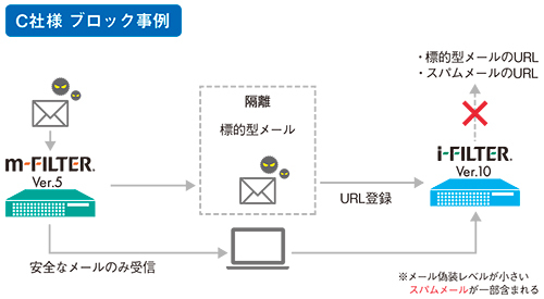 C社様では長年「i-FILTER」と「m-FILTER」をご利用いただいておりましたが、最新版のリリース直後に「i-FILTER」Ver.10と「m-FILTER」Ver.5をご評価いただき、早々に連携ソリューションの運用を開始いただきました。