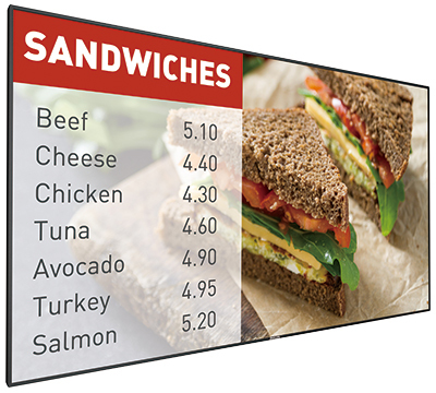 商業施設や交通機関、公共施設など、あらゆる場所で利用されているデジタルサイネージ。動的なコンテンツを流すことで人目を引くことができ、時間帯や状況に応じて内容を入れ替えることもできる。外国人観光客の増加に伴ってニーズが増加している多言語での案内表示にも容易に対応し、さらにはユーザーの操作に応じたインタラクティブな表示にも利用できるなど、多くのメリットが期待できる。近年、店舗業務の省力化を目的としたデジタルサイネージの活用も広まりつつあるという。労働人口が減少し、多くの現場で人手不足が顕著になってきているなかで冨板係長は、「現場の省力化につながるソリューションとしても期待されている。例えばファストフード店などの飲食店では、店内のメニュー掲示パネルをデジタル化する例が増えた。メニューを店員が入れ替える手間をなくすと同時に、朝や昼といった時間帯ごとのメニューを自動で表示できる」と、その効果を説明する。