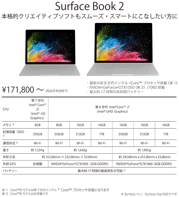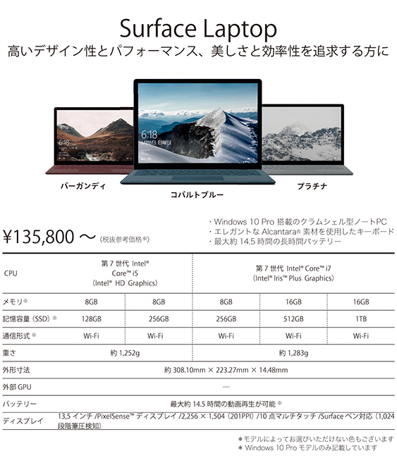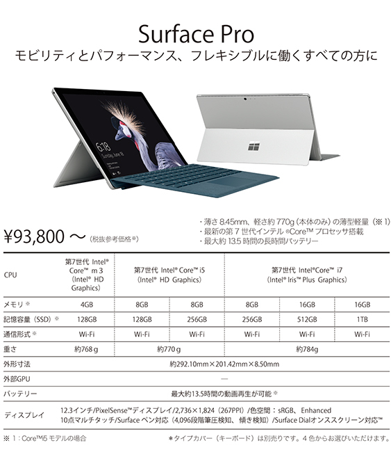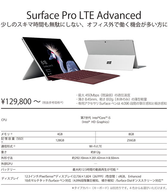 ※価格は全て2018年5月時点の税抜参考価格です。実際の販売価格はSurfaceパートナー各社にお問い合わせください。