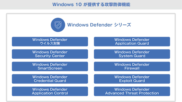 「現在では、『Windows Defender』の名を冠する機能は10種類ほどあり、Windows Defenderウイルス対策はその中の一つとして位置づけている。なお、『Windows Defender』という名称は、セキュリティ対策全般を指すブランド名となり、『Windows DefenderAdvanced Threat Protection (ATP)』など『Windows Defender』を冠した包括的なセキュリティ機能が Windows10で提供されている」と、津隈シニアプロダクトマネージャーは説明する。