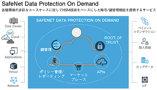 また、DPoDのもう一つの大きな特徴が、クラウド、仮想、オンプレミスなど、あらゆる環境でのデータ保護を提供していることだ。「Amazon Web Services」「Microsoft Azure」「Google Cloud Platform」といった各クラウドサービス環境においても、暗号鍵をDPoDの管理下において管理を一元化できる。なお、ジェムアルトはHSMと鍵管理サービスを提供・管理するが、暗号鍵自体を制御できるのはユーザーだけだ。