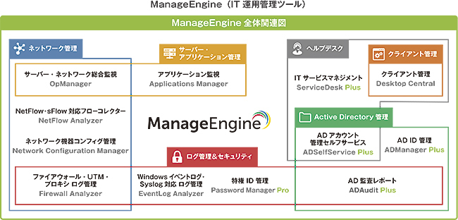 ゾーホージャパンでは現在、ネットワークやサーバー・アプリケーション、Active Directory、ヘルプデスクなど、各ジャンルに基づく計12製品を完全に日本語化した上で取り扱っている。