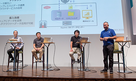第2セッションは、主要HCIベンダー3社の対決。「Dell EMC VxRail」を提供するEMCジャパン、「Nutanix NX」を提供するニュータニックス・ジャパン、「NetApp HCI」を提供するネットアップが登壇。オンプレミスとマルチクラウド連携をテーマに議論した。最初のテーマは、マルチクラウドへの取り組みと将来のゴール。ニュータニックスは「HCIを土台に、インフラに必要なものを網羅。さらにマルチクラウドを含めたインフラの上で使いたいものへ拡大する」、ネットアップは「九つのクラウドデータサービスのポートフォリオを展開しており、オンプレとクラウドを自由に行き来できるようにする」、EMCジャパンは「マルチクラウドへ向けたITトランスフォーメーションを加速すべく、HCIの上にソフトウェアデファインドデータセンター(SDDC)、ハイブリッドクラウド向けソリューションを展開している」と語った。