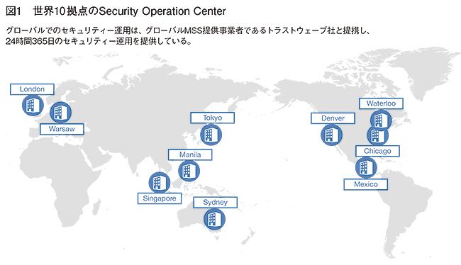 トラストウェーブの強みはそれだけではない。同社は東京を含む世界10カ所(図1参照)にSOCを置いており、DR対策で大きなアドバンテージがある。関谷氏は、「世界10拠点にSOCを置いているのは、競合他社と比べても多い水準。最低3カ所のSOCを同時稼働させるというのがASOCの基本的な考え方で、例えば自然災害などで特定のSOCに社員が出勤できなくなっても、他のSOCがカバーしてサービスを継続できる体制になっている」と強調する。