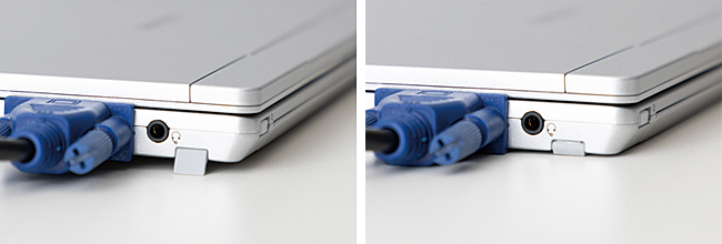 しかも、薄い筐体にVGA端子を備えたことで、ケーブルの抜き差しで机などと干渉しないよう、折り畳みのツメを装備する。こうした点にも、実用シーンを考えて、とことん使い易さを追求した開発姿勢がうかがえる。また、ビデオ会議でも快適に会話ができるように、ステレオスピーカーは人の声がクリアに聞こえる改善が図られている。
