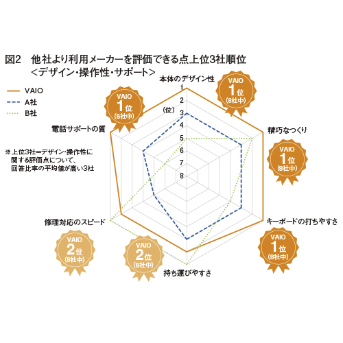 調査結果をVAIOに問うと、「製品開発、設計、製造、出荷に至るまで一貫して品質にこだわり続けてきた当社として、当然の結果と捉えている」という答えが返ってきた。