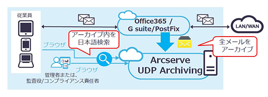 福田 当社は、17年11月に仮想アプライアンスとしてArcserve UDP Archiving6.0を、19年12月にアーカイブデータをクラウド上に保管できるUDP Cloud Archivingをリリースしました。メール利用者の大多数がクラウド メールサービスに移行し続けている状況で、メールのアーカイブ先にもクラウドを利用したいお客様のニーズと、より安価なサービス提供により競争力を強化したいソースポッドさんの要望に、UDP Cloud Archiving機能と価格がマッチしたため、今回の協業につながりました。