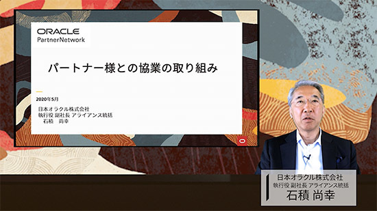 開催のあいさつに続いて登場した日本オラクルの石積尚幸・執行役副社長アライアンス統括が「パートナー様との協業の取り組み」と題して講演。本格的なクラウド時代を迎えた現在、オラクルは自社ですべてを網羅する従来の方針を転換し、パートナーとの関係をより密にコラボレーションしていく方針に切り替えたと強調した。