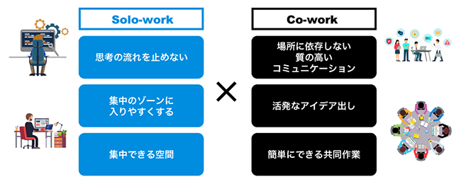 これは在宅勤務であっても同様で、自宅においてSolo-workの質を高めて、各所にバラバラに存在しているチームメンバーでも密なCo-workを実現していくことが重要になってくる。