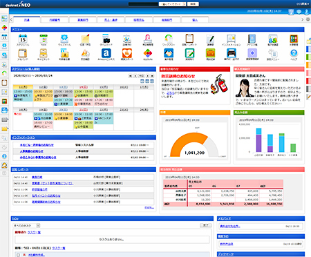二つのITツールのうち、“土台”に位置付けられているのが情報共有とコミュニケーションを実現するdesknet's NEOだ。パッケージ版に加えて、従業員がいつでもどこでも働ける環境を構築するためにクラウド版も提供している。
