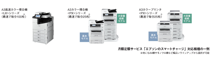 学校向けには、定額料金プラン「エプソンのスマートチャージ」の専用プラン「アカデミックプラン」を2019年11月にスタート。同プランで毎分100枚※の印刷速度を誇るA3高速カラー複合機「<LX>シリーズ」を選べるようにしたことで、印刷渋滞を解消できるようにした。
