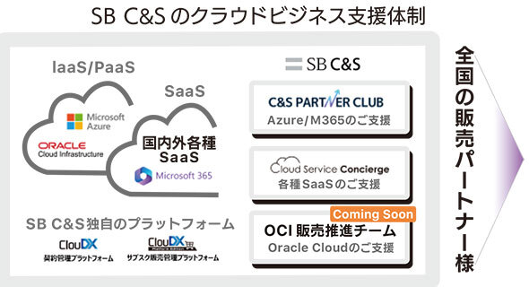 このような課題の解決に向けてSB C&Sでは、SaaS専任チーム「Cloud Service Concierge」とサブスクリプション契約・更新管理のためのプラットフォーム「ClouDX」により、販売パートナーがSaaSを販売しやすい環境を用意している。