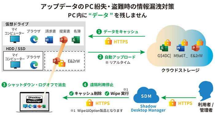 ――持ち出しPCの紛失・盗難時の情報漏えいを防ぐ仕組みとしては、業務を行うデスクトップ環境をサーバー上で実行し、画面のみ転送するVDIなどが長らく提供されてきました。それに対して、今回皆さんがご提案されている「データレスクライアント」は、アプリケーションはローカルのPC上で実行するが、ユーザーデータはクラウドなどのリモート環境にあるファイルを仮想的に利用する仕組みとお聞きしました。