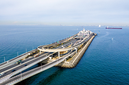 橋とトンネルの接続部には人工島である「海ほたる」があり、
