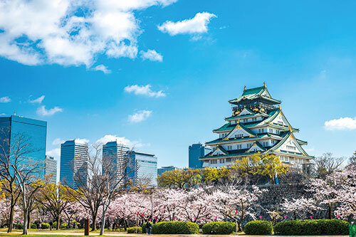 大阪城公園は、園内に約3000本の桜を擁する関西屈指の桜の名所で、花見シーズンには大勢の見物客が訪れる。