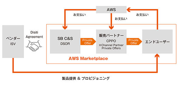 DSORとは、AWS Marketplace上で「販売者(Seller of Record)」として認定される制度で、この認定により、SB C&Sはメーカー各社のソフトウェア・サービスを流通経由の仕組みで提供しつつ、案件ごとに特別価格(プライベートオファー)を提示することが可能になった。