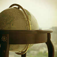 My favorite キヤノンU.S.A社長を務めている当時、米国の顧問弁護士から寄贈された「揺籠式架台」の地球儀。「グローバルにモノを見なさい」との意味が込められており、今も大事に飾っている