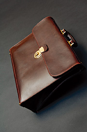 明治34年(1901年)に大阪・東心斎橋で創業した鞄の老舗「馬場万鞄店」に依頼し、オーダーメードで作ってもらった牛革製の鞄。同店は、1つひとつ丹念に縫い上げる変わらぬ手法とこだわりの素材を使う。新宅正明社長と同店の3代目店主、秋山哲男氏は中学校の同級生。好みのデザイン、素材、色合いを指定し、「すべて自分好みで、飽きず、使うほど良くなる」と、特に気に入っている品だ