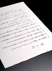 My favorite「鬼十則」と書かれた1枚の紙。藤田社長にとって仕事を進めるうえで心得えておくべき10の教訓が記されている。日本IBM在籍時に上司からもらった文書で、今も大切に保管している。その上司との出会いは、仕事に対する考え方や姿勢を変える大きなきっかけになったそうだ