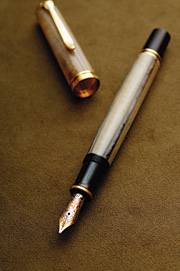 My favorite ダイエーから身を引く際に、知人から「お疲れさま」という意味で贈られた万年筆。腕のよい職人による手作りの品だそうだ。それまでは万年筆には馴染みがなかったが、「使ってみると書きやすい」と実感。インクは黒だけでなく茶色を使うなど、こだわっている