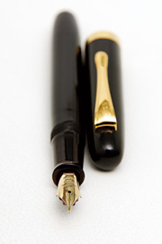 My favorite ハンドメイドの万年筆。オープンシステム関連の団体「OSPG(基盤技術委員会)」の幹事役を長らく務めていた。社長になったときに、同団体の有志メンバーから贈られた品で、愛用している